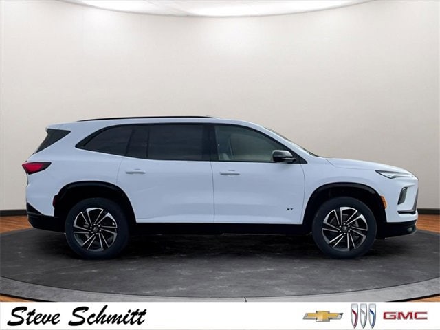 Price advertised is subject to qualifying for all applicable rebates. If you're looking for a new car, truck or SUV near St. Louis or Edwardsville, then look no further than Steve Schmitt Inc. At our Highland dealership, we have a large variety of Chevy, Buick, and GMC models, all just ripe for the picking. Steve Schmitt has delivered four generations of Customer Service...right here in Highland! Steve Sr. Plays an active role in the dealership as well as the community, and Steve Jr. Manages the day-to-day operations. At Steve Schmitt Chevy Buick GMC, it is more than a name on a sign...it is our family looking forward to exceeding your family's expectations! This vehicles includes the following features Front Mounting License Plate Bracket Package, Power Package (110-Volt Power Outlet, 2nd Row 1-Touch Flat Folding Seat, 3rd Row 60/40 Power Split-Folding Bench Seat, Head-Up Display, Heated Wiper Park, Inside Rearview Auo-Dimming Rear Camera Mirror, Memory Settings, and Universal Home Remote), Preferred Equipment Group 1SM, 12 Speakers, 3rd row seats: split-bench, 4-Wheel Disc Brakes, ABS brakes, Air Conditioning, Alloy wheels, AM/FM radio: SiriusXM with 360L, Apple CarPlay/Android Auto, Auto High-beam Headlights, Auto-dimming door mirrors, Auto-dimming Rear-View mirror, Automatic temperature control, Bose Premium 12-Speaker Audio System with Subwoofer, Brake assist, Bumpers: body-color, Compass, Delay-off headlights, Driver 4-Way Power Lumbar Seat Adjuster, Driver 8-Way Power Seat Adjuster, Driver door bin, Driver vanity mirror, Dual front impact airbags, Dual front side impact airbags, Electronic Stability Control, Emergency communication system: OnStar and Buick connected services capable, Four wheel independent suspension, Front anti-roll bar, Front Bucket Seats, Front Center Armrest, Front dual zone A/C, Front Passenger 4-Way Power Lumbar Seat Adjuster, Front Passenger 6-Way Power Seat Adjuster, Front reading lights, Fully automatic headlights, Heated door mirrors, Heated Driver and Front Passenger Seats, Heated front seats, Heated steering wheel, Illuminated entry, Leather steering wheel, Low tire pressure warning, Navigation System, Occupant sensing airbag, Outside temperature display, Overhead airbag, Overhead console, Panic alarm, Passenger door bin, Passenger vanity mirror, Perforated Leatherette Seat Trim, Power door mirrors, Power driver seat, Power Liftgate, Power passenger seat, Power steering, Power windows, Premium audio system: Buick Infotainment System, Radio data system, Radio: Infotainment Center, Rear air conditioning, Rear anti-roll bar, Rear reading lights, Rear side impact airbag, Rear window defroster, Rear window wiper, Remote keyless entry, Security system, SiriusXM with 360L Trial Subscription, Speed control, Speed-sensing steering, Spoiler, Sport steering wheel, Steering wheel mounted audio controls, Tachometer, Telescoping steering wheel, Tilt steering wheel, Traction control, Trip computer, Turn signal indicator mirrors, Variably intermittent wipers, Vertical Cargo Net, Voltmeter, Wheels: 20 Alloy with High Gloss Black and Machine Finish, Wireless Apple CarPlay, and Wireless Google Android Auto. A $299 charge for 1st Place Finish is in addition to the vehicle's sale price for all new inventory treated with our ceramic protection.$1750 - Buick GMC Bonus Cash. Exp. 03/31/2026 $500 - Buick & GMC Consumer Cash Program. Exp. 03/31/2026 $500 - GM Military Cash Allowance Program. Exp. 01/04/2027 $500 - GM Rewards Card Sales Sign Up and Spend Offer. Exp. 06/30/2026